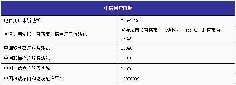 上图仅仅国家工信部网站一个渠道提供的投诉及服务相关监督电话。如果你真的想投诉运营商,你可以通过国家工信部网站、电话、微博、微信等非常多的方式;如果对地方运营商(例如浙江移动、山东联通)的投诉,除了可以通过客服电话网站、微博、微信等之外,还能通过地方通信管理局、地方市民热线等渠道。