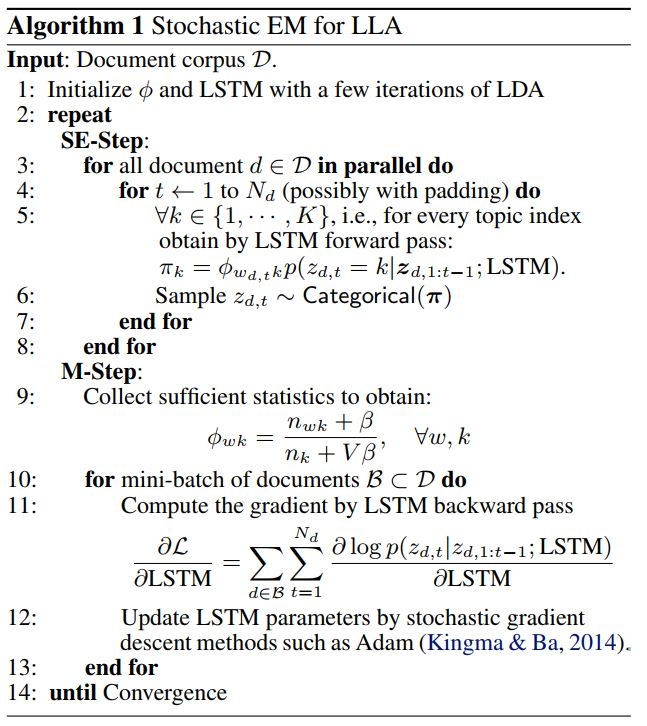 LLA 继承了 LDA 模型的稀疏性和可解释性,同时还具有 LSTM 的准确率。作者们在文中提供了多个 LLA 的变种,在保持解释性的前提下尝试在模型大小和准确率之间找到平衡。如图1所示,在基于Wikipedia数据集对语言建模的任务中,LLA 取得了接近 LSTM 的准确率,同时从模型大小的角度还保持了与 LDA 相同的稀疏性。作者们提供了一个高效的推理算法用于LLA的参数推理,并在多个数据集中展示了它的功效和解释性。