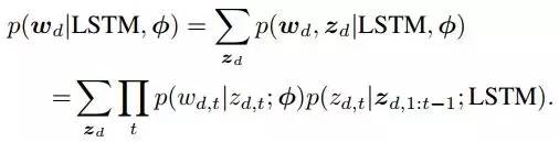 则是给定了话题之后生成单词的概率。这个公式就展现出了对基于 LSTM 和 LDA 的语言模型的简单改动。