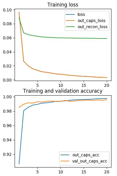 运行 python capsulenet.py: epoch=1 代表训练一个epoch 后的结果 在保存的日志文件中,epoch从0开始。