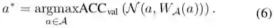 公式 (5) 已经不存在搜索空间的连续参数化,只有网络权重被优化。