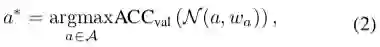 公式 (6) 与公式 (1) 、 (2) 的最大区别是其权重是预先初始化的。评估仅需要推理。没有微调或者再训练。因此搜索非常有效。