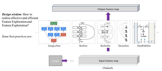 图3. 神经网络building block的设计目标和目前最流行的几种building blocks。