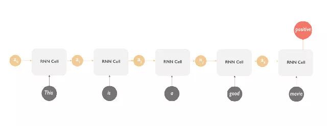在上图的情感分析任务中,RNN 并不是在每个时间步都有输出,而是在读完整串词语后,仅在最后一个时间步输出一个单一值:「positive」。