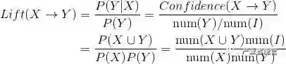 X → Y 的提升度表示含有X的条件下,同时含有Y的概率,与Y总体发生的概率之比。