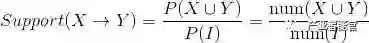 X → Y 的支持度表示项集 {X,Y} 在总项集中出现的概率