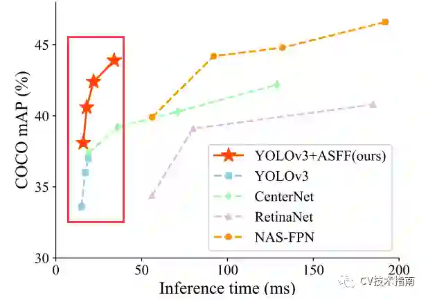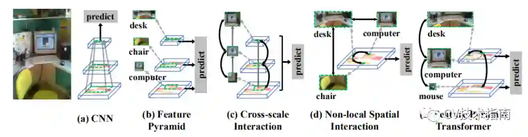 这篇论文的主要观点是认为背景中其它物品的存在也会辅助识别某一个类别,例如电脑只会在电脑桌上,而不是大街上或水里,背景中的鼠标,键盘也会辅助区分电视机与电脑显示器。因此需要融合金字塔其它level的信息,这虽然出发点与ASFF不同,但实际改进的思路都是一样的,都是让每一层都融合其它层的语义信息。