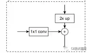 具体操作是先对每一层进行1x1降维,对于第一和二,第二和第三层这种分辨率比为1:2的,通过3x3,步长为2的卷积降采样,对于第一和第三层这种分辨率比为1:4的,先对进行max-pooling,再通过3x3,步长为2的卷积降采样。然后通过系数加权融合。