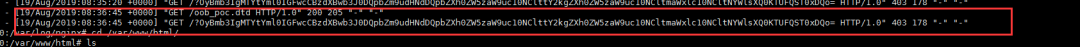 可以看到自己的服务器上,日志里多了一条请求,即数据经过 base64 加密外带到服务器的记录。这里如果文件过大则会外带数据失败。。不知道是什么原因。。