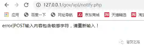 上文提到,$postArr 变量是由伪协议输入得来的,而该 CMS 全局是有对 GET 和 POST 参数进行过滤的,一但输入单引号等特殊字符,就会被拦截。也正因为是使用伪协议的方式写入参数,从而绕过了该检查机制。