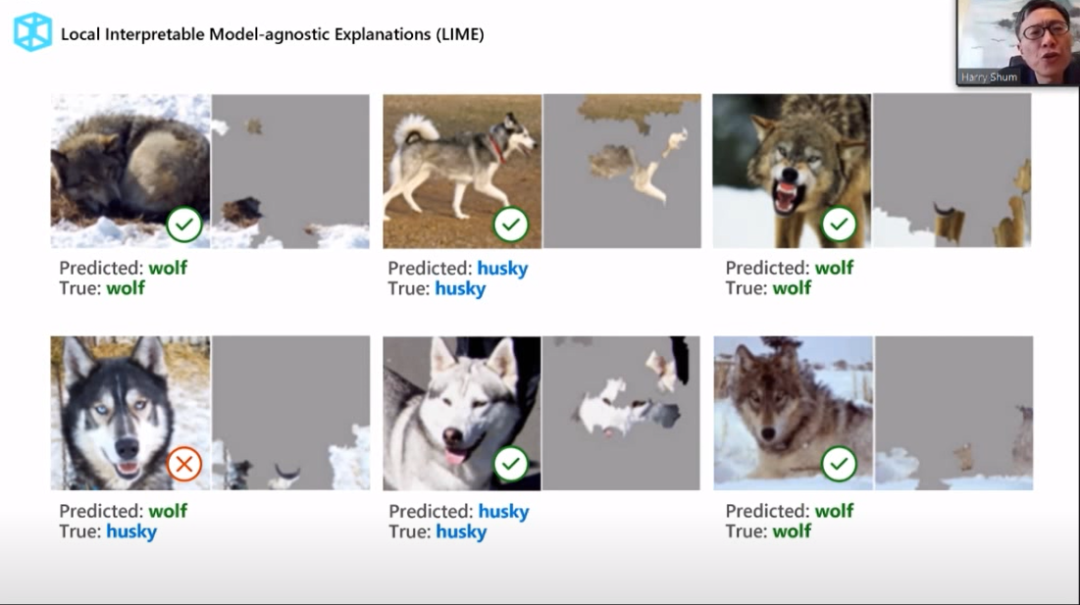 翻译到这儿,小编想到了清华大学高等研究院双聘教授沈向洋博士,他曾经在多次演讲中举到过的哈士奇的例子:用已经训练好的神经网络检测图片中的动物是狼还是哈士奇。在上面6张照片中,左下角的一张被识别错了。识别错的原因是:深度神经网络并非像我们理解的那样通过动物的外形来辨别的,而是在观察图像中有没有雪,如果有雪,那就是狼。当时沈博士举这个例子是想说明模型可解释性的重要性,与今天作者提到的“捷径”有异曲同工之意。