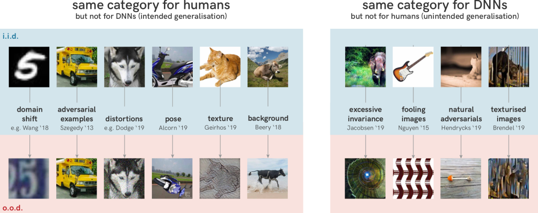 首先要认识到目前大多数基准测试有一个主要缺点:那就是在训练中,模型只对服从独立同分布的图像数据进行测试(i.i.d测试)。但是这种类型的测试往往导致模型有很弱的泛化能力,然而我们想要的是与人类的直觉大体一致的强大的泛化能力。