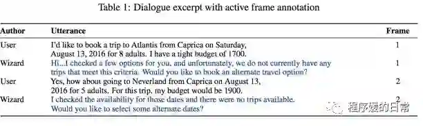 继续说对话的数据集。刚才的 DailyDialog[3] 主要针对的还是比较偏闲聊(chit-chat)的对话语料(其中也有一些 task-oriented 的,但比较少且不典型)。下面要介绍的这份语料 Frame,来自 Maluuba 团队[4][5] 则主要是针对 task-oriented 也就是任务导向型对话的新语料和新任务。
