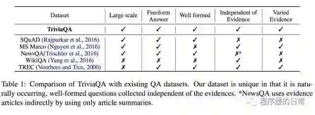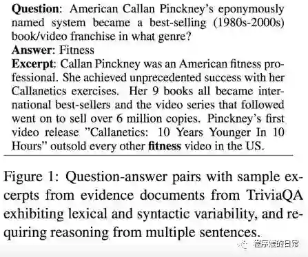 另一份多轮推理的阅读理解数据集来自 ACL 2017 的工作[2]。这篇工作中提出的数据集叫做 TriviaQA,它主要有以下三大特点: