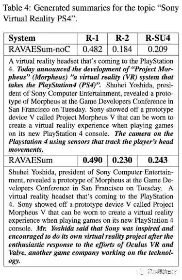 同时,论文也给出了自己的一个模型来解决这样一个任务。可以看看最后生成出的一些摘要: