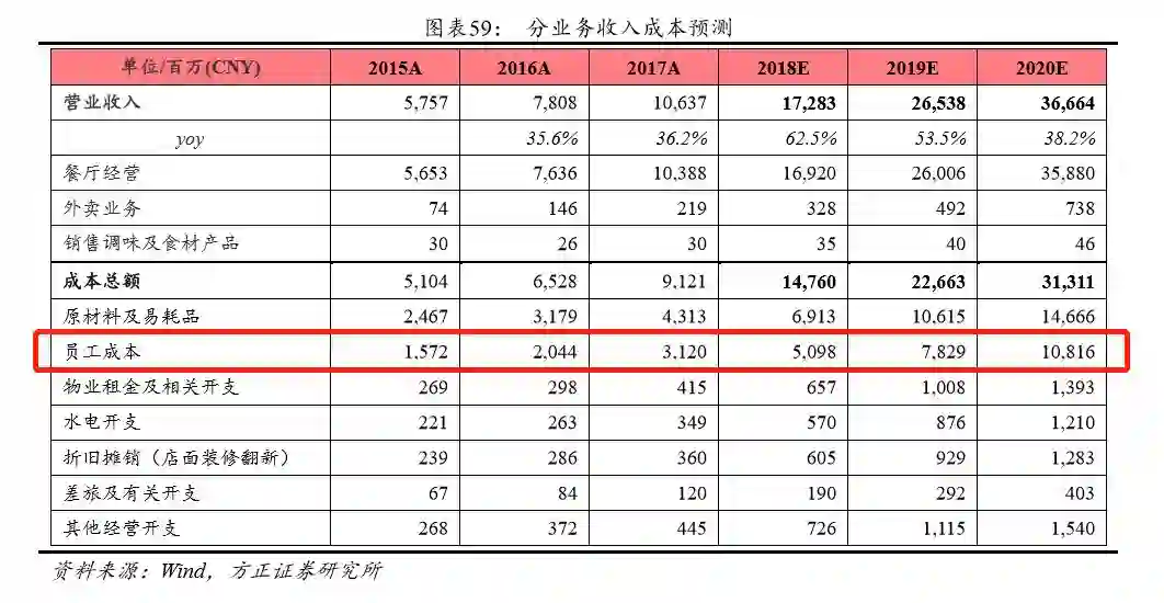 据财报显示,员工成本一直是海底捞的重要成本项,占比高达30%。即使其扩门店不断渠道下沉,也没有下降,反而呈现出逐年递增的态势。