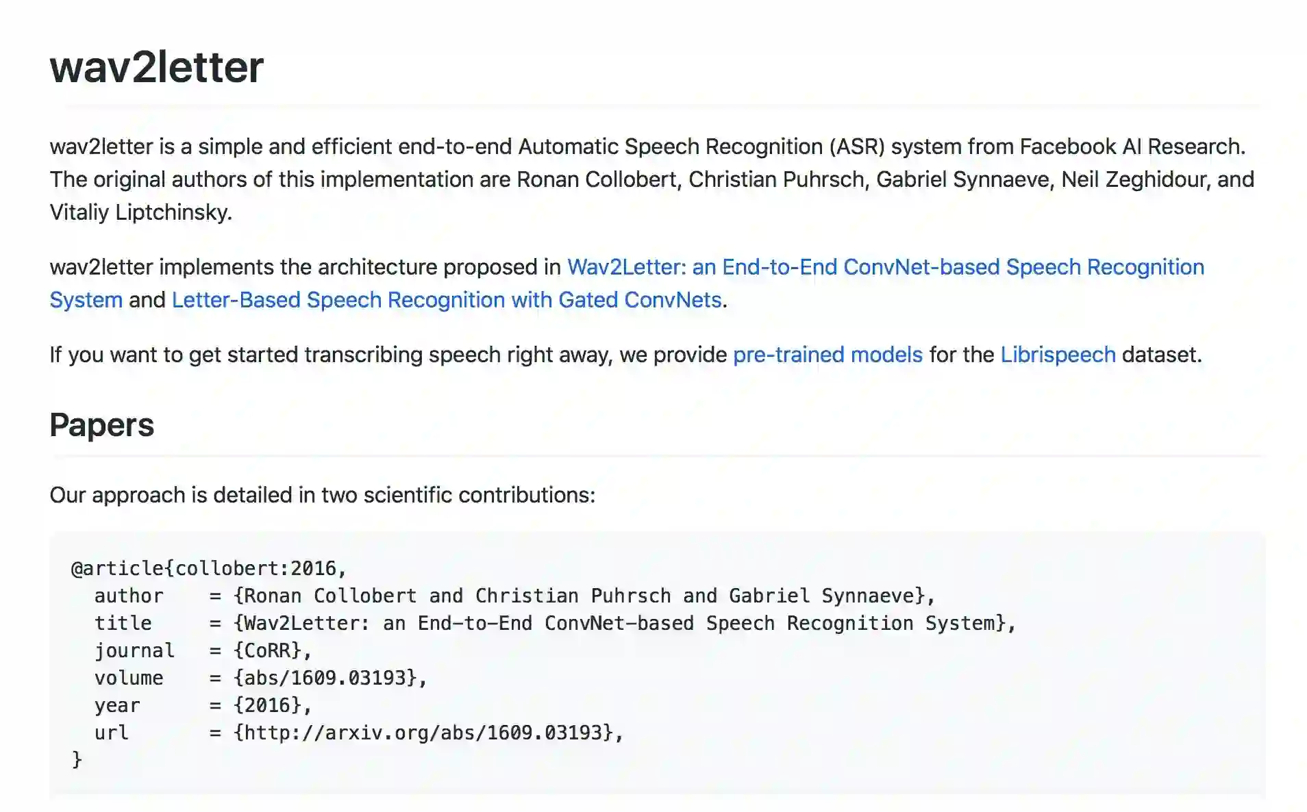 16年11月,Facebook的三位研究者Ronan Collobert, Christian Puhrsch, Gabriel Synnaeve在arXiv.org上发布文章,正式提出了wav2letter。