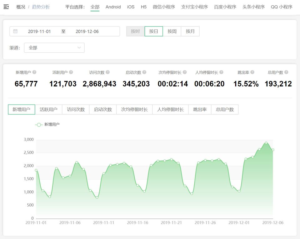 2019年9月19日,DCloud正式发布uni统计。刚刚过去的11月,DCloud的uni-app和5+app业务,合计手机月活设备达到2.5亿(已对同设备多个应用去重)。总设备数,达到了8.5亿+。DCloud也进入亿级俱乐部。uni统计已成为很多开发者必不可少的工具,他们依靠uni统计做运营、改进产品,甚至他们给投资做汇报的全端用户报表,也来自uni统计的截图。