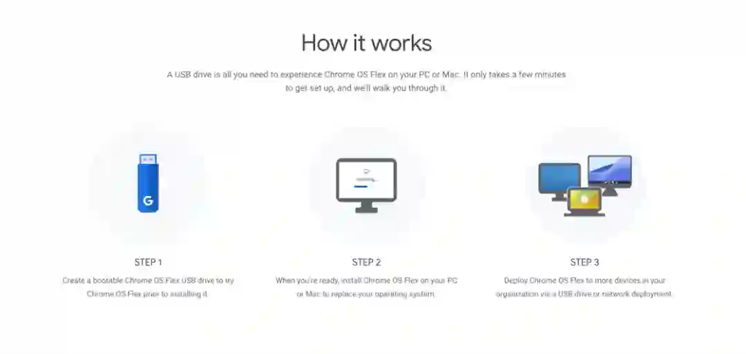 即便没用过,你大概也会在近几年的各种报道中听闻过 Chrome OS 的名字:它是 Google 基于 Chrome 浏览器生态开发的轻量级云端操作系统,2020 年市场份额甚至还超越了 macOS 成为第二大操作系统。加上后续对 Android、Linux 应用运行环境的支持,对大多数国内用户而言还比较陌生的 Chrome OS,事实上也已经成为了一个成熟的桌面端操作系统。今年 2 月,Chrome Enterprise 团队发布了面向 Windows/macOS/Linux 设备、可以快速刷入的 Chrome OS 系统分支 —— Chrome OS Flex。作为一项拥有 Chrome OS 官方支持的「刷机」服务,除了轻量级的特征之外,它的出现瞄准的是教育市场大规模部署的现实需求,安装过程自然也相对简单——这个项目其实能上溯到 2020 年,当时 Google 收购了开发 CloudReady 的公司 Neverware,而 CloudReady 就是一个基于开源的 Chromium OS 代码库开发而来的操作系统,它在 ChromiumOS 原本就很「轻量级」的基础上,进一步对系统组件进行了尽可能地精简,让这一系统在有着大量老旧、低性能 PC 设备的欧美教育市场能够大规模部署。在被 Google 收购之后,CloudReady 也成为了 Chrome OS 套件的一部分,在整合了更为完整的 Google 第一方服务之后,如今它也得以以 Chrome OS Flex 的形态继续运行下去。无论是 Windows、macOS 还是 Linux 系统的笔记本电脑,都可以通过官方提供的镜像文件安装上 Chrome OS Flex 系统。当然,Chrome OS Flex 官方还是提供了一个供参考的最低硬件配置要求: