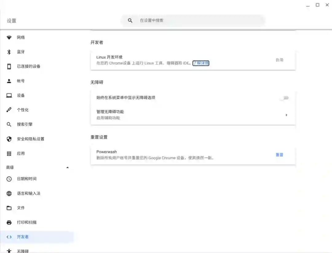 满足上面五项要求,这台设备就至少可以正常运行 Chrome OS Flex 系统了。不过 Google 文档中也有提到 2010 年之前设备的可能会因为处理器与显卡性能导致「糟糕的使用体验」,另外能正常运行 Chrome OS Flex 也并不意味着设备能正常使用所有功能,这个我们之后会详细介绍。▍安装指南首先仍然需要声明的是:Chrome OS Flex 项目目前仍处于早期测试阶段。因此如果通过官方渠道进行安装,则需要手动填写申请邮件才有机会获得 Chrome OS Flex 的测试资格。但既然你已经看到这里并已经清楚风险,并且想要在自己的设备尝鲜 Chrome OS Flex,跟随本文的教程也可以省去很多繁琐步骤和麻烦。首先,我们需要准备一个至少 8GB 容量的 U 盘来烧录 Chrome OS Flex 启动盘,同时也需要一台已经运行有 Chrome 浏览器的电脑(Chrome OS 也可以)来制作启动盘。准备就绪后,前往 Chrome 线上应用商店并安装 Chromebook 恢复工具。安装完成之后,打开 Chrome 插件管理页面,确保 Chromebook 恢复工具的开关是打开状态。如果没有的话手动点击卡片右下角的蓝色按钮将其开启。上述插件安装完成之后,点击打开 Chromebook 恢复工具,开始启动盘烧录过程。在品牌列表选项中选择 Google Chrome OS Flex,型号选择参考下图。在数次确定之后,启动盘制作过程就会自动开始。这个过程花费的时长视网速区别有较大差异,但无论如何,整个制作过程还是相当简便的。Chrome OS Flex 启动盘制作完成之后,关闭设备并进入 BIOS 引导从启动盘启动:不同品牌 PC 的按键各有不同,Mac 可以通过在开机时按下电源键之后立即按下 Option 键进入引导界面。之后我们就可以启动 Chrome OS Flex 了。虽然 Chrome OS Flex 提供了不安装只在启动盘中体验的选项,这里需要注意一下安装介质本身的速率对于安装能否顺利以及直接运行的性能都相当重要。并且如果想要相对长期的使用,就必须使用启动盘来直接在设备上安装 Chrome OS Flex;由于 Chrome OS Flex 安装选项中并无提供选择盘符安装的选项因此也意味着 Chrome OS Flex 的安装流程将会抹掉磁盘上包括原本系统在内的全部资料。▍实际体验那 Chrome OS Flex 的体验,值不值我们完全抹掉一台旧设备来刷入安装呢?对于 Google 粉丝或是生态内的重度用户来讲,Google 第一方系统的优势在 Chrome OS Flex 中可以说是得到了最大程度的展现:例如在控制面板直接查找/静音你的手机,收发短信同步、以及使用手机数据来访问网络,使用手机解锁电脑等等,这些一直都是 Chrome OS 的传统优势。另外,从安装系统并登录 Google 账号之后开始,我们之前使用过的 PWA 应用也会自动被同步到新系统中。给原本 Google 生态下的用户一种「拎包入住」 的便捷感,这些都是 Chrome OS 本身作为一个「云端系统」 所拥有的优势。除了上述这些,Google 第一方的文件传输工具 Nearby Share 在目前的 Chrome OS Flex 也已经得到支持,另外 2022 年内还会支持更多 Fast Pair 设备切换功能以及 Android 13 中通过手机在 Chrome OS 端串流运行 Android 应用,这些特性未来也都会如数加入 Chrome OS Flex。由于 Chrome OS 本质上主要功能更新都依赖云端同步,因此主线 Chrome OS 中更新的各种功能/样式与 Bug 修补,Chrome OS Flex 也基本都能保证同步更新,而且可以预期的是未来也会有和 Chrome OS 一样的、几乎无限周期的「刷版本号」式更新,这也会成为 Chrome OS Flex 的一项优势。Chrome OS Flex 最实用的价值在于,对于低性能设备而言,将系统换为 Chrome OS Flex 除了能进一步提升 Chrome 浏览器本身的运行效率,还能省出更多存储空间。如果你日常的工作内容都已经能使用 Chrome 生态与 Google 系服务,以及各种在线工具来完成,Chrome OS Flex 对老设备当然是一次相当值得的「翻新」。不过上述这些几乎已经是 Chrome OS Flex 的全部优势了:对于不需要/不常用 Google 服务的人来讲,Chrome OS Flex 的各种「便捷功能」也很可能变成使用上的不便,不仅在 Chrome OS Flex 的安装过程中就需要登录 Google 账户、锁屏密码会被自动设定为对应 Google 账户的密码……这些细节也进一步增加了国内用户使用 Chrome OS Flex 的门槛。说到门槛,Chrome OS Flex 另一个略显尴尬之处在于它不支持 Android App 的运行,这在一定程度上限制了设备拓展玩法的可能性;至于 Linux 运行环境,则要更要视设备硬件来决定是否可以正常开启。在我手上的这台 PC 上,常见提供 deb 安装包的 Linux 版本 App 都可以直接安装并运行。在开发者选项中将 「Linux 开发环境」一项选中,就可以手动分配 Linux 运行环境的安装空间以及权限设置等信息。Linux 在桌面端的应用生态上甚至会比 Chrome OS 原生系统更适合使用,这里可以根据自己的需求以及设备规格自行调整。如果你是 Linux 资深用户愿意折腾,并且设备性能足够,你甚至可以在 Chrome OS Flex 的 Linux 开发环境跑起来 VS Code / Android Studio 这样的开发工具。另外,Chrome OS 老生常谈的中文输入法简陋问题一样对中文用户很不友好,内置的中文输入法自定义程度相当低,以 2022 年的标准来看甚至达不到堪用的标准,而 Chrome OS 支持第三方输入法这件事本身就已经是一个陈年老大难。虽然借助于 Linux 运行环境可以选择安装搜狗输入法,但仍然无法在 Chrome OS 原生环境下使用。▍替代方案从上述的这些优点/缺点其实能看出,不同于 Linux 或是一些 Android 第三方 ROM 非盈利项目面向第三方设备开放刷入权限的行为,Google 正是因为意识到