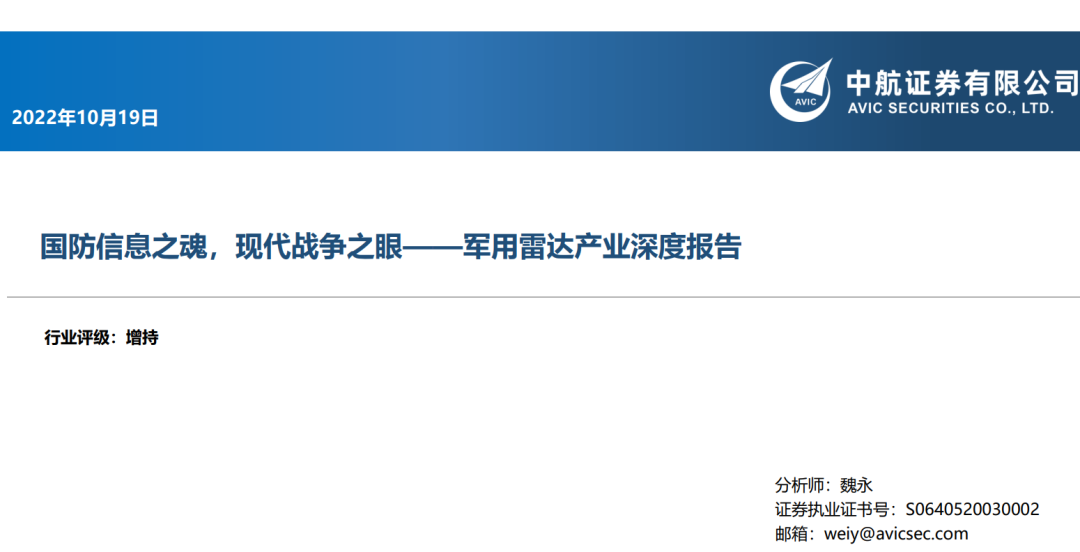 后台回复“RDFG” 就可以获取《军用雷达产业深度报告:国防信息之魂,现代战争之眼》专知下载链接