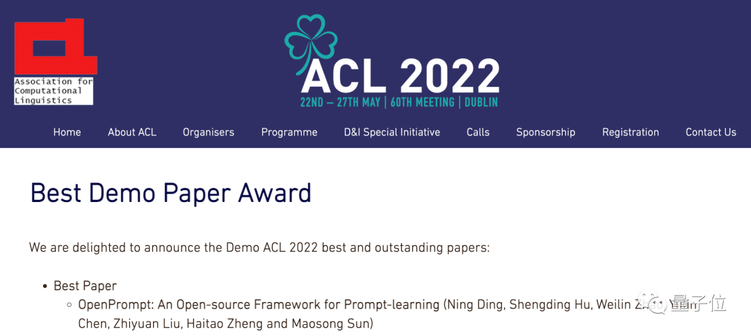 前不久,THUNLP还获得了ACL 2022最佳演示论文奖(Best Demo Paper Award)。