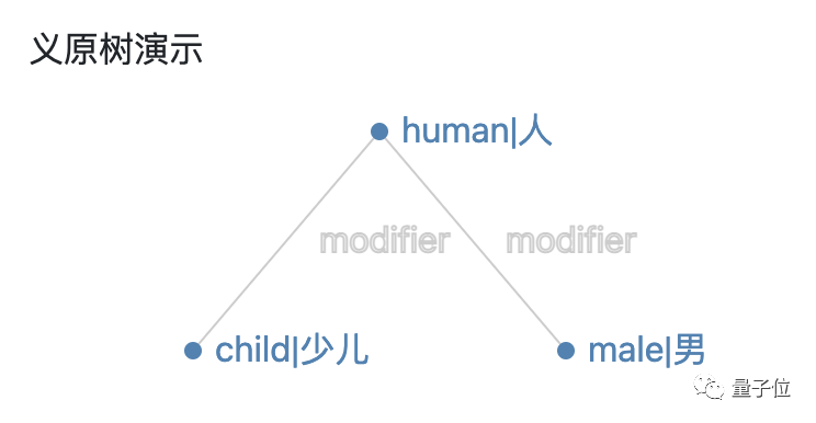 举个例子,“男孩”这个词可以由“人类”、“男性”、“儿童”这个三个义原表示,“女孩”则可以由“人类”、“女性”、“儿童”的组合来表达。