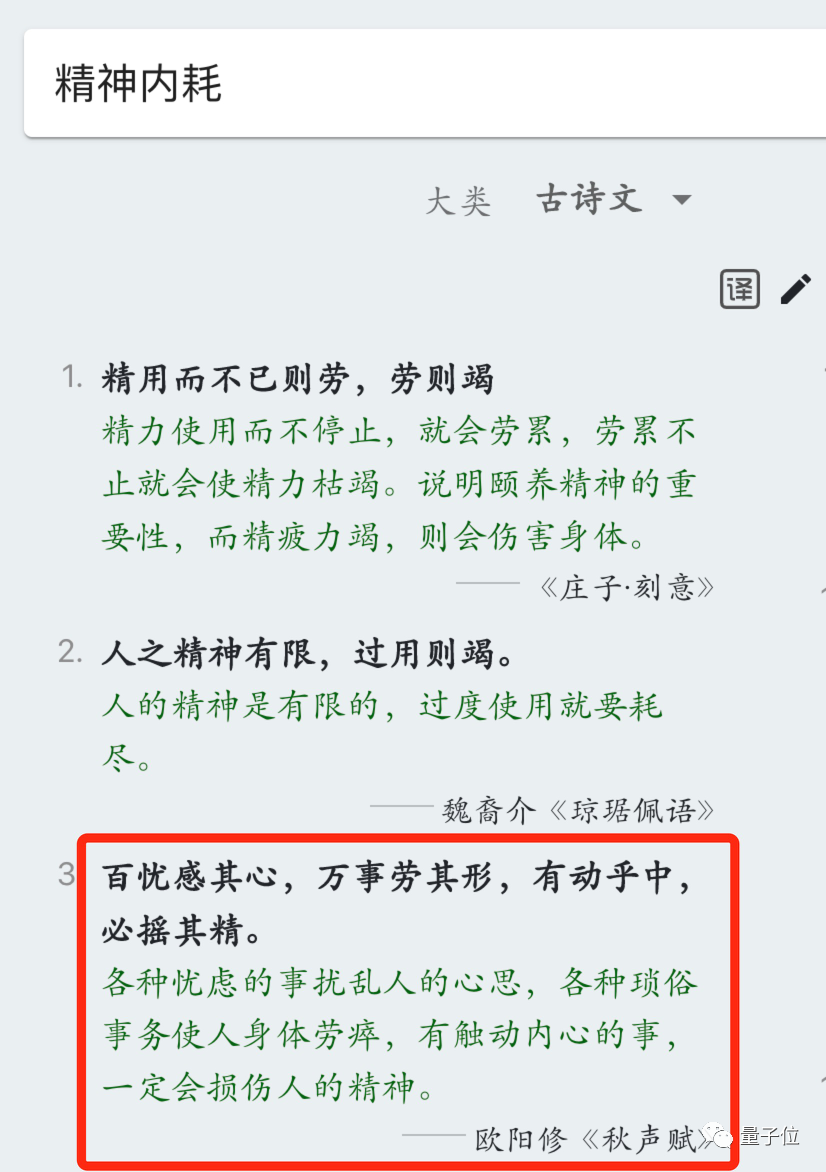 来自欧阳修《秋声赋》中的这句“百忧感其心,万事劳其形,有动乎中,必遥其情”,说的意思就是焦虑使人精神疲惫。