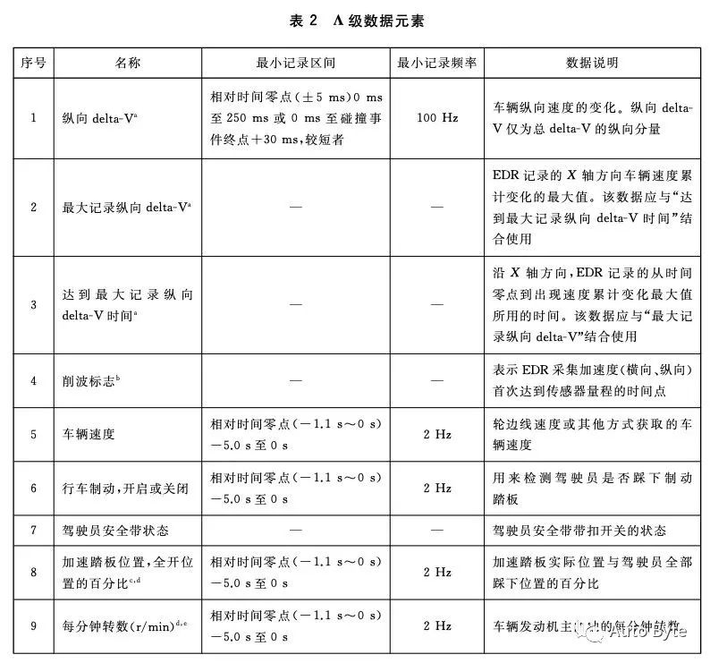 根据GB 7258-2017《机动车运行安全技术条件》要求,中国EDR法规中将需要记录的数据分为A、B两级,按照阶段依次实施。