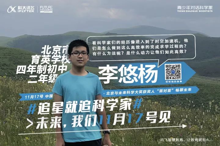 在参加此次对话的青少年中,13 岁的李悠杨从小就对科学有着浓厚的兴趣,在他看来这个世界是到处充满着趣味的,都值得花费大把的时间用来钻研,来研究其中的门道。