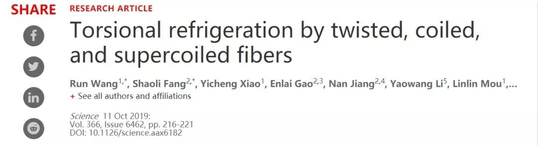 今天,10月11日在线出版的《科学》(Science)杂志刊文,报道了南开大学与美国德克萨斯州立大学达拉斯分校的一支国际联合研究团队研获的一种柔性制冷新策略——“扭热制冷”。他们发现,改变纤维内部的捻度可以实现降温。由于制冷效率更高、体积更小且适用于天然橡胶、钓鱼线以及镍钛合金等多种普通材料,基于这种方法制成的“扭热冰箱”也变得前景可期。