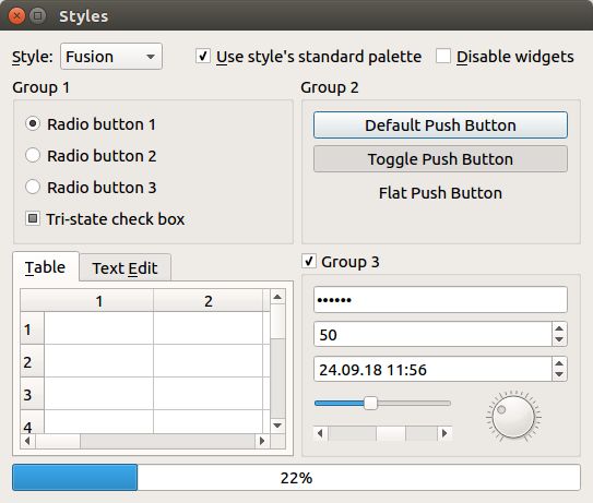 可用的样式取决于你的操作系统,但通常是"Fusion"、 "Windows"、 "WindowsVista"(仅Windows)和"Macintosh" (仅Mac)。