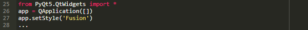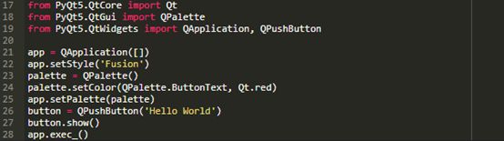 如果你喜欢一种样式,但想要改变它的颜色(例如 对一个黑暗主题),您可以使用QPalette 和app.setPalette(...)。例如: