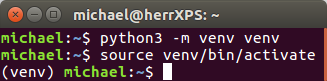 你以看到,虚拟环境是通过shell中的(venv)前缀激活的: