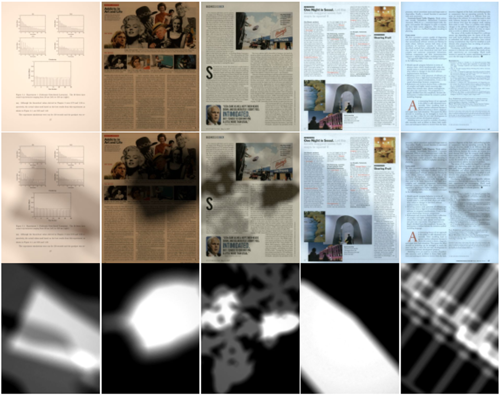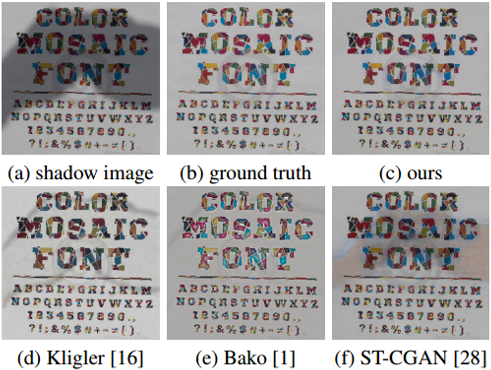 [1] Bako, S.,Darabi, S., Shechtman, E., Wang, J., Sunkavalli, K., & Sen, P. (2016,November). Removing shadows from images of documents. In Asian Conference on Computer Vision (pp. 173-183). Springer, Cham.