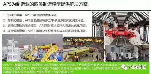 对离散的制造行业解决复杂的加工过程如多工序、多资源等(Job Shop调度),对重复式或流程式的制造行业解决顺序问题如优化排序等(Flow Shop调度)。
