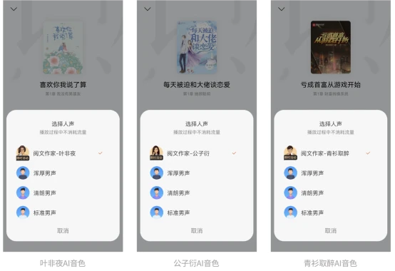 在刚刚过去的国际盲人节,QQ 浏览器免费小说 “听书” 功能更新,推出叶非夜、公子衍、青衫取醉三位阅文作家的 AI 音色包,并上线 “朗读官” 频道。名人更具有影响力和号召力,因此容易被选择录制音色包,而 QQ 浏览器选择了三位作者,可以看出 QQ 浏览器在数字阅读方面积极探索玩法持续创新的决心,听作者读自己写的小说确实别有一番感受。