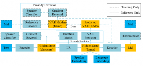 腾讯 PCG AI 交互部相关负责人向机器之心表示,在录制音库时,会专门加入一些东北方言文本,发音人按照方言朗读。训练 StyleTTS 声学模型时使用无监督学习帧级 VAE 对韵律进行帧级表征,实现说话人音色与韵律解耦,而与口音相关信息主要保留在韵律模型部分。在东北女声上,使用方言、普通话不同数据对韵律部分进行对抗训练,加强韵律模型对口音的学习。