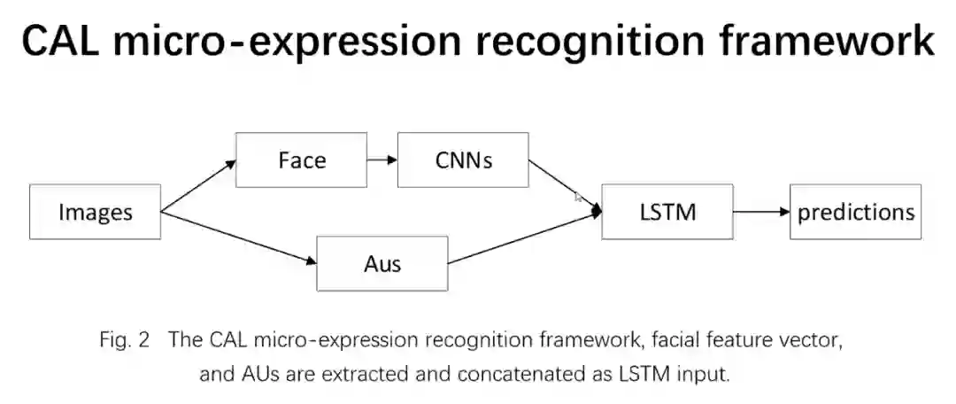 在简要介绍了目前主流的微表情研究方法以后,郑仕鑫同学介绍了他们提出的CAL微表情识别网络,微表情样本分别通过AU特征提取和基于CNN的人脸特征提取,融合后进入LSTM网络进行最后的情感分类。