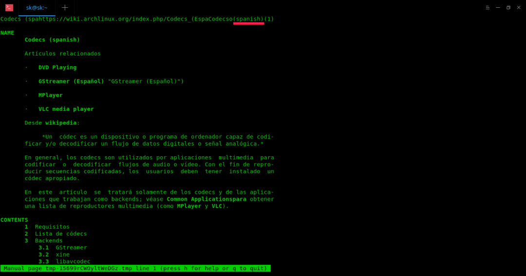 awman 默认打开的是英文的 Arch Wiki 页面。如果你想用其他的语言查看搜索结果,例如西班牙语,只需要像这样做: