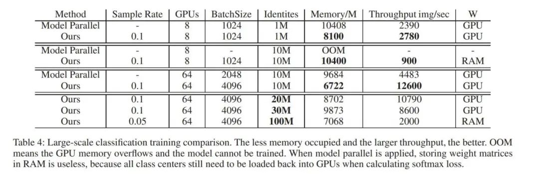 通过这个公式我们发现,更多的类别数,只要增加GPU的个数,就可以维持 占用的显存不变,我们再看看