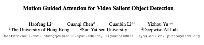 本文解读了香港大学联合中山大学和深睿医疗人工智能实验室 ICCV2019 论文《Motion Guided Attention for Video Salient Object Detection》。