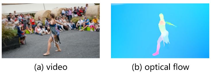 其三,利用运动信息的空间连贯性,有助于分离物体和背景。背景外观可包含纹理不同的多个区域,而物体可包含内部边缘及不同外观的部件,这造成了分割的困难。而表征运动的光流图片相对“干净”(如图1b),可更好地捕捉部分物体边界,成为分割显著物体的契机。