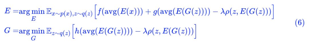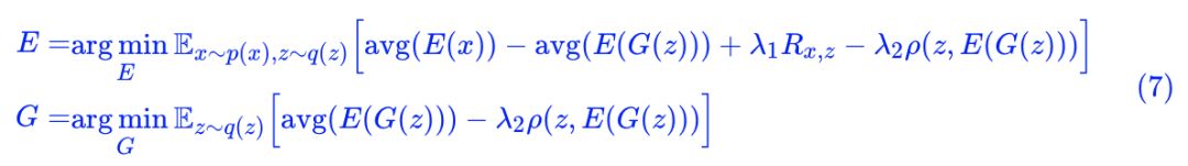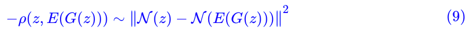 这也是为什么在 (6) 中我们甚至可以直接用 avg(E(x)) 做判别器,因为它不会被 ρ(z,E(G(z))) 的影响的。