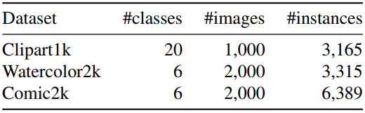 为验证该策略的有效性,作者分别采集并手工标注了三个分别具有实例级标注的目标数据集:Clipart1k,Watercolor2k,Comic2k。