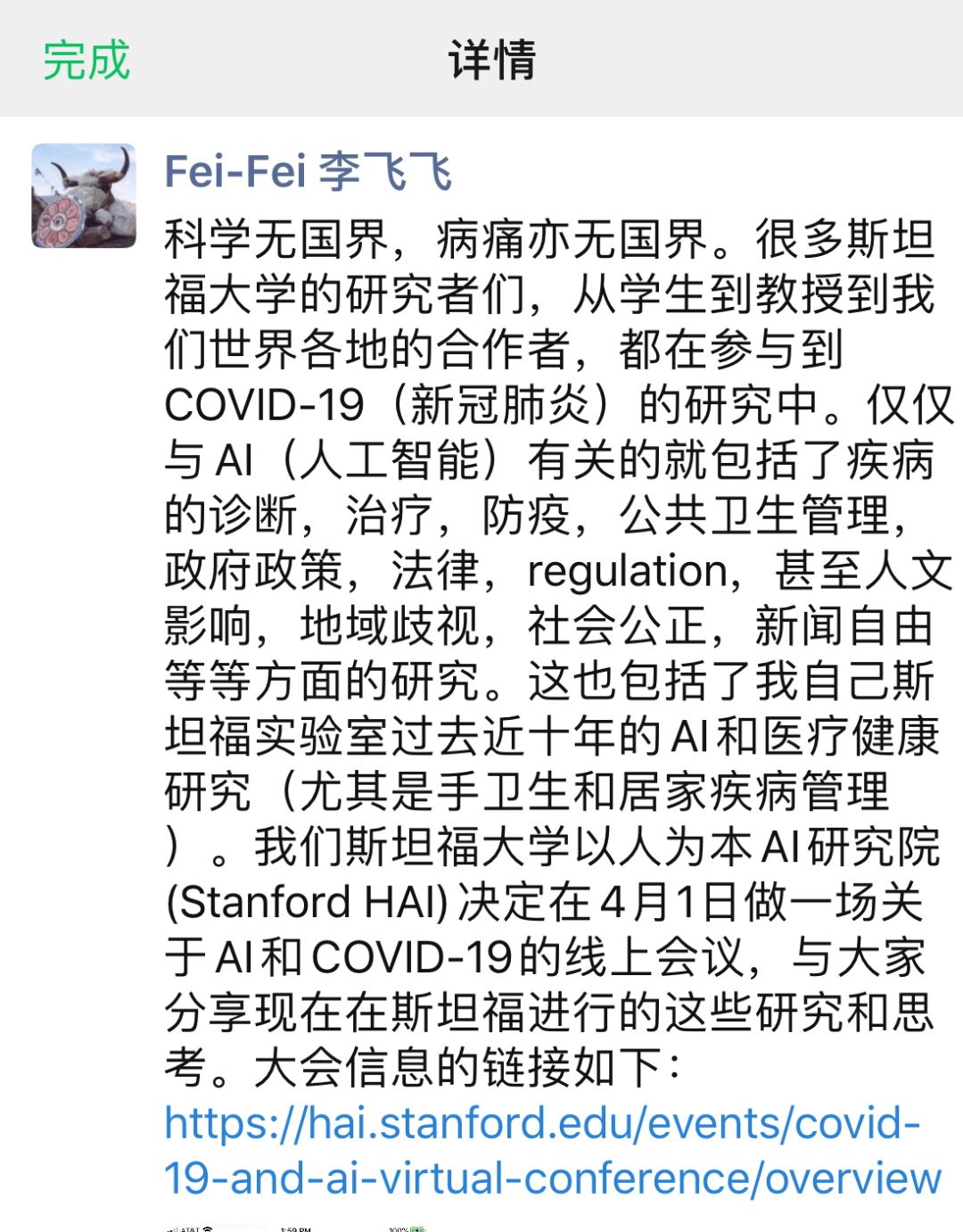 在众多会议取消的大潮中,也有因为新冠而紧急筹备的活动。由著名 AI 学者李飞飞负责的斯坦福大学人本 AI 研究院近日宣布即将在 4 月 1 日举行一场围绕新冠病毒和人工智能的线上会议。