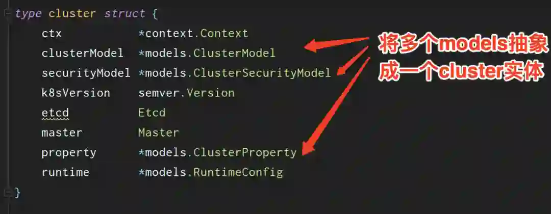 Skipper 为了采用充血模型,在 core obj 中进行了封装,例如 cluster 对象,隐藏了 Dashboard 中的多个 models 结构体,隐藏了某些字段实际是 JSON 字段的,对外暴露出带有方法的 cluster 对象,设计时候考虑了多种集群存在的可能性,所以整个对象对外不是一个实体,而是暴露了一个 Interface。而在实际使用时,发现为了对外暴露对象属性,Interface 中充斥了大量的 Get 的 Set 方法,显得很笨重,而且由于不同类型集群的差异并不体现在 cluster 对象本身,而是 cluster 的业务逻辑中,所以暴露 Interface 并没有达到抽象集群的作用。