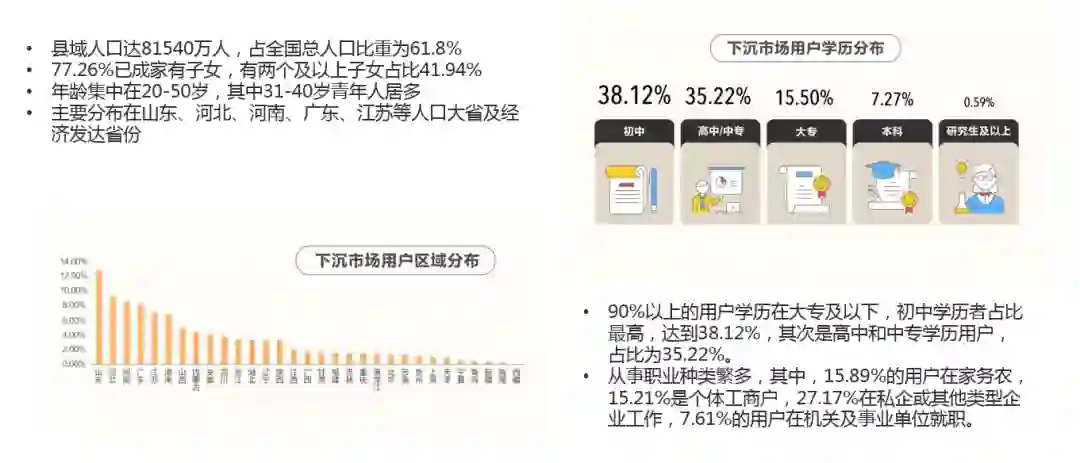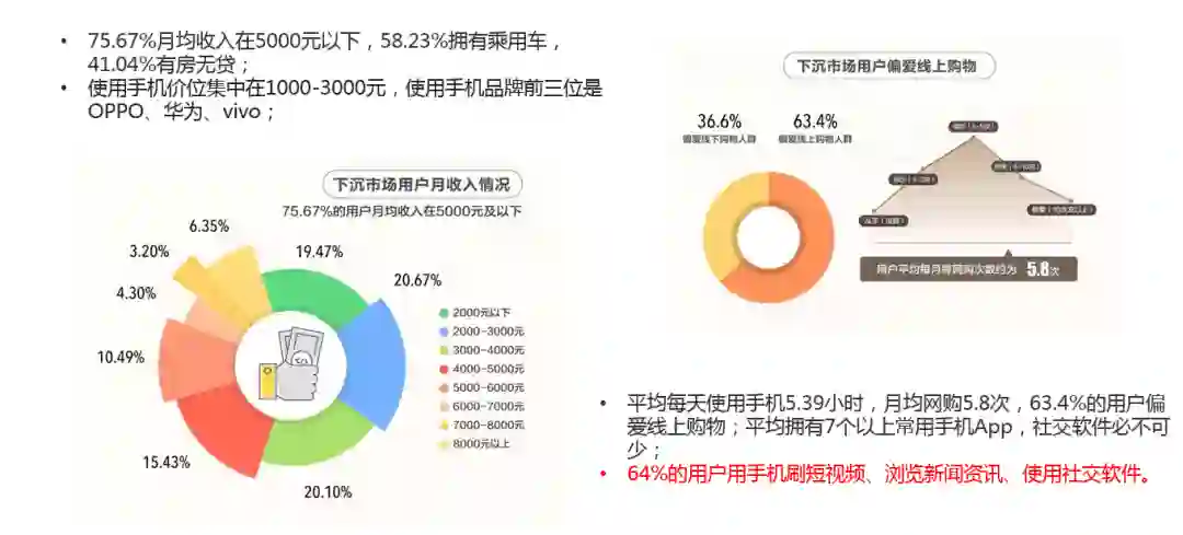 这里引用同镇去年11月份发布的一份关于下沉市场的调研数据,帮助大家对下沉市场有一个简单的直观认识: