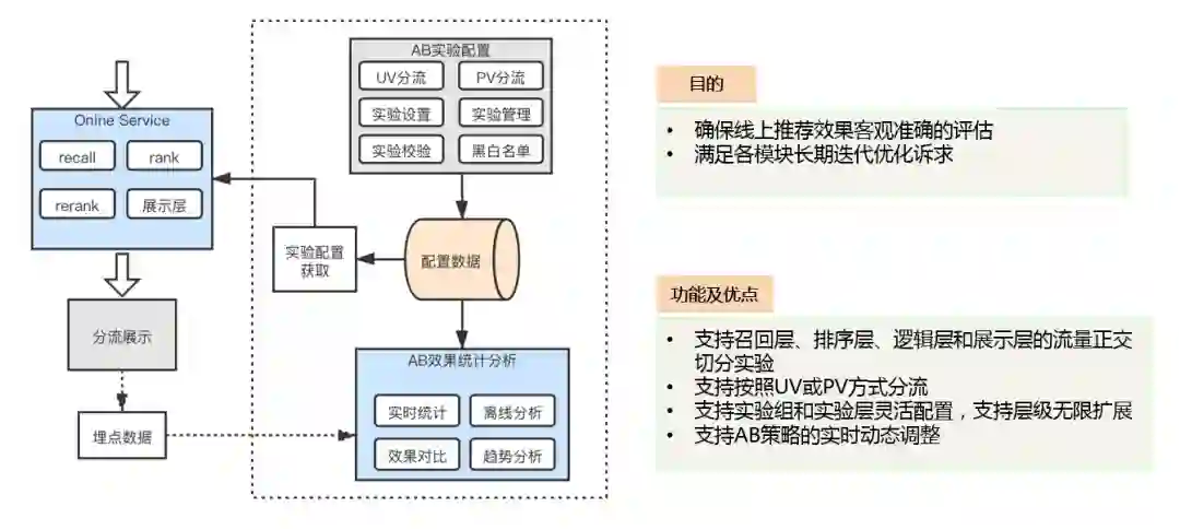 为保证线上推荐效果客观、准确的得到评估,也为了满足推荐各模块长期优化的诉求,我们搭建了ABTest实验平台。