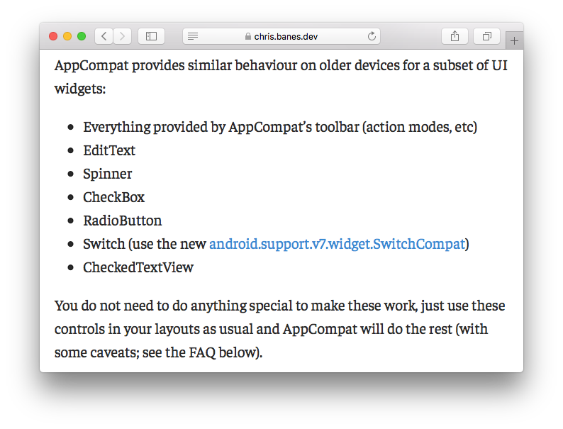 想要在这个框周围添加阴影吗?没问题,请使用这个奇怪的.9.png 文件,或者依靠 API Level 21,你就可以正确渲染阴影了(尽管只有凸形阴影)。不好意思,你忘记实现自定义视图四个构造函数的其中一个了。但我不会抛出编译错误,我只会在运行时崩溃!现在有支持超高屏幕密度的手机了。可以在应用里添加 xxxhpi 的 assets 吗?不行,不支持矢量图,我们做不了这个。——来自 Android SDK 的深夜独白